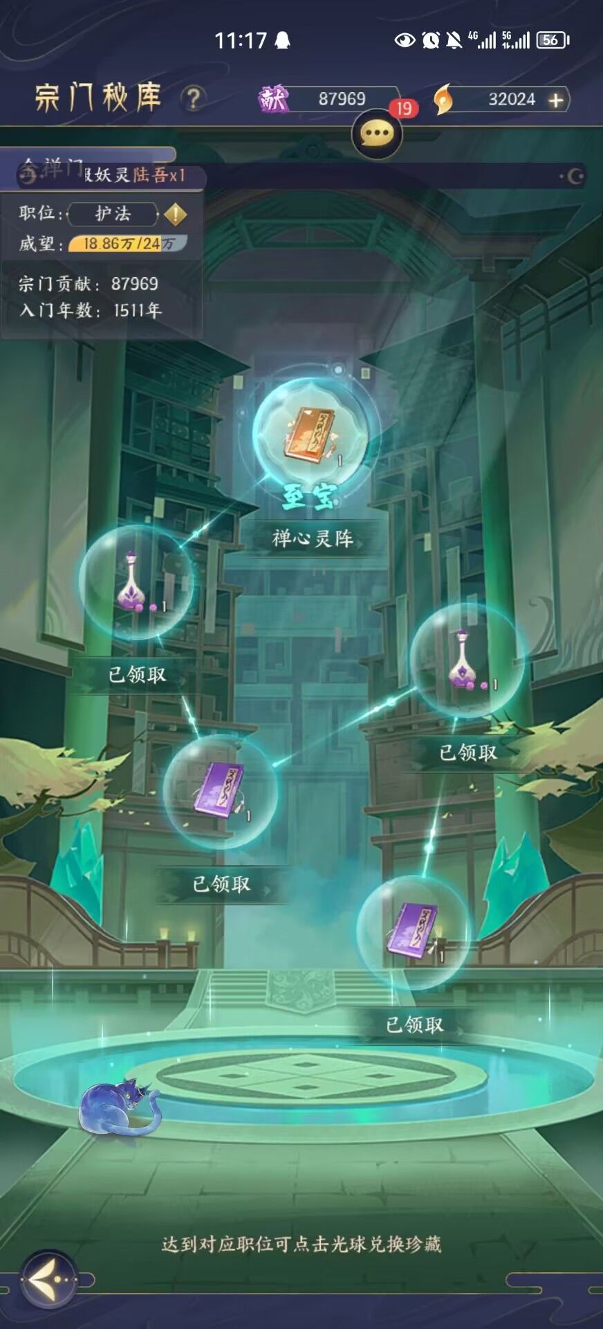 1.5 仙草枝完成24小时后,宗门拿灵池水,奖励灵品本命祭炼石50个