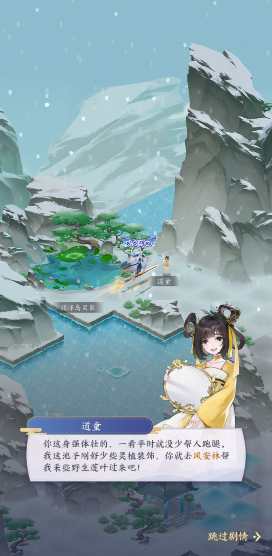 4.9 前往第六章北泽岛灵泉,看到三个雪人,一阵点击获得各种资源,然后蹦出来一个小女孩说你碰坏了她的雪人,必须赔偿荷叶三个。