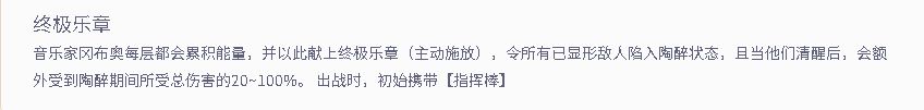 释放技能终极乐章时可以令所有敌人陷入到它令人陶醉的音乐中