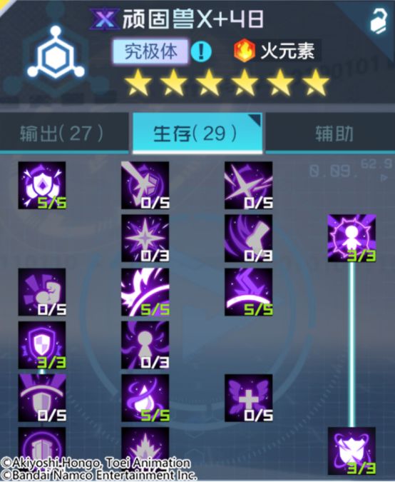 尽量提升顽固兽X的输出能力和韧性,突击插件对于增益状态的目标具有更高的伤害上限,防御系的受击回AP天赋使顽固兽X更容易打出压制效果。
