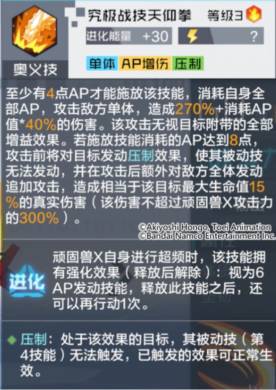 攻略丨顽固兽X全面解读!攻击敌方无视防御,消耗AP解除控制!