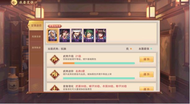 变强途径:界面内将根据主公拥有的武将进行提升引导,便于主公了解提升的路径和方式~