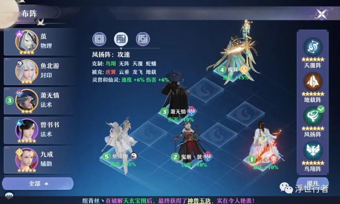 鱼南翔负责解封或者开墙或者封印,禅音负责加血金刚复活,萧无情加鬼姬为主要输出单位(萧无情也可以考虑换成高速奶妈或者付瑶光,双奶容错率更高,付瑶光第一回合爆发很强)。