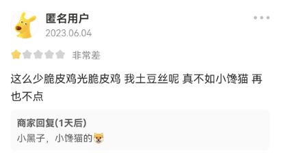 而某小馋猫连锁店的老板大姐对此格局超高——虽然你段子里讲我家拌饭米粒进PY里了,但我非但不生气反而还热情款待。