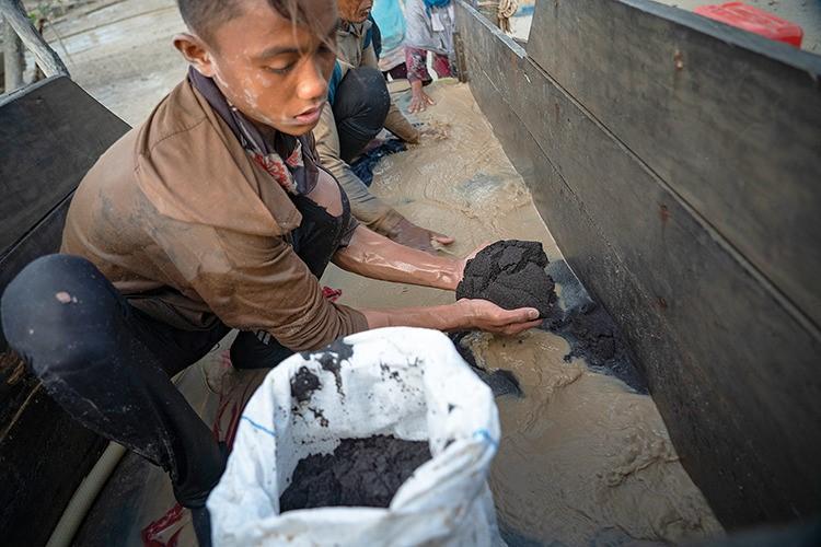 13岁的Ikran辍学开始了矿工工作,他正在筛选含有锡矿石的污泥