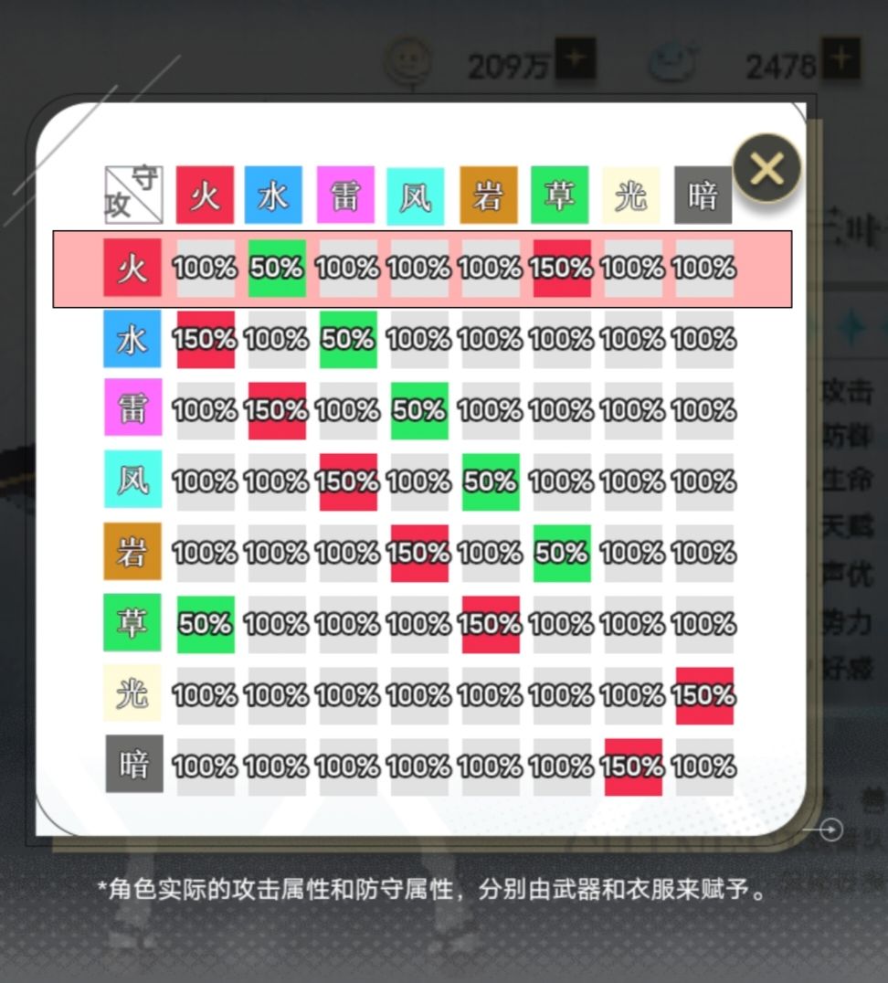 (原理:火克草,雷克水,水克火。 如果你玩的刚好是三叶 火属性,那你遇到水属性关卡主C造成的伤害降低了50% 这样会很肉打不懂,如果带的火属武器,因为三叶对火属有加成 ~ 那减伤不明显。如果带的雷属性武器虽然得不到主C的属性加成,但那50% 属性克制加成效果等同于装了一把火武。 )