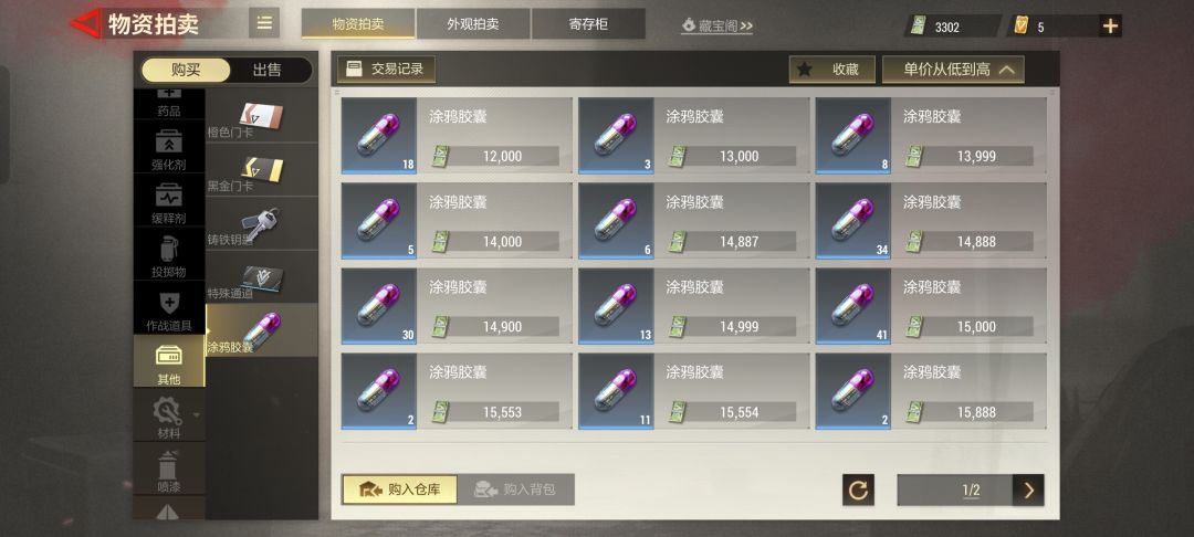 在超凡先锋中卖活动品需要掌握时机,所有的商品刚一出来就是价格的顶峰。逐渐随着时间的推移越往后有些东西越不值钱,而有些东西先前可能不在意之后会因为新人的加入有可能会一夜暴富!(图六本人想赌一把,赌的是以后这个游戏能大火!现在有多少现金买多少,不管是多高的价格。只要不超过一万六通通拿下,晚上的时候胶囊价格偏低)