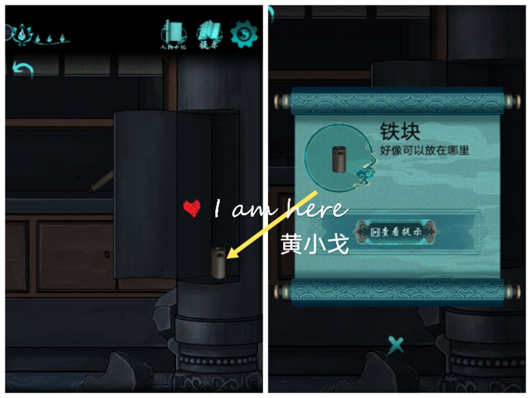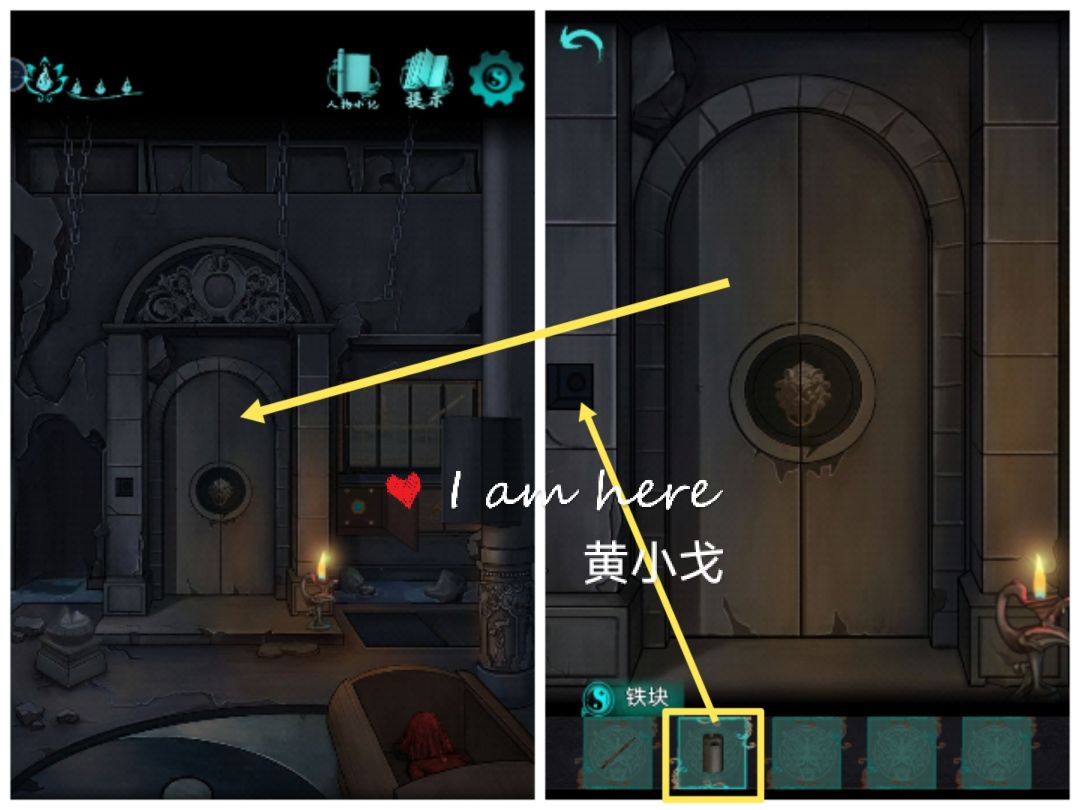 10.点击石门,放上【铁块】,打开门
