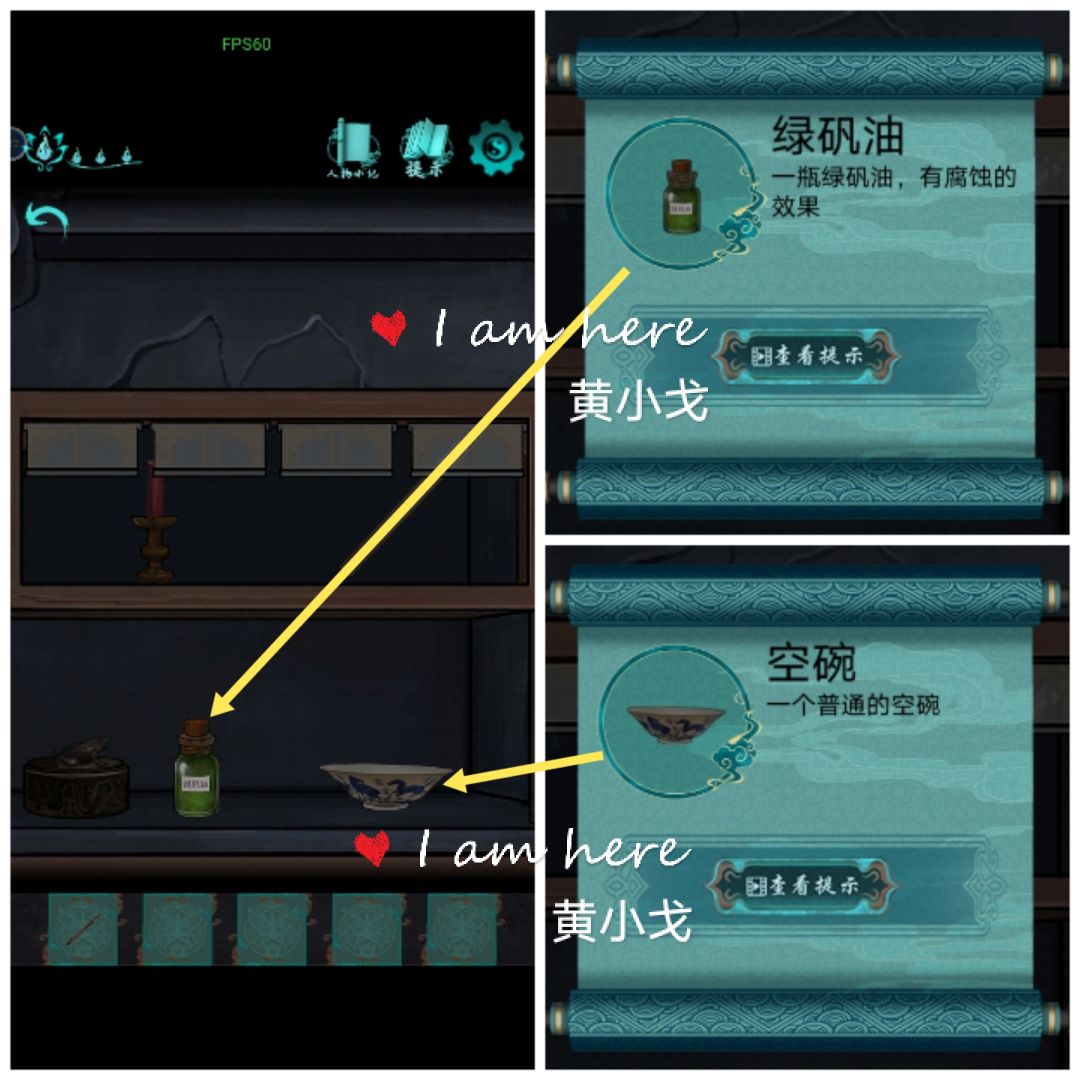4.拉上纱帘,获得【绿矾油】和【空碗】