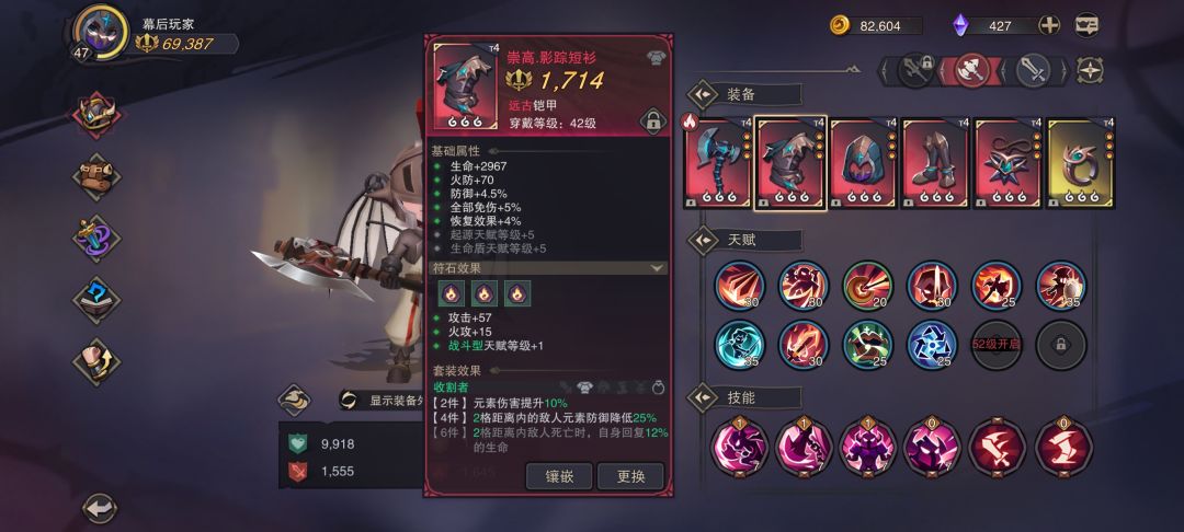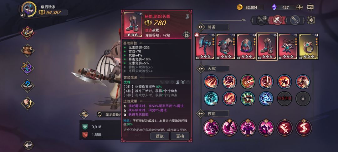 人物技能我带的冲撞+链斧+战吼+爆发,前两个是为了位移,省行动点。战吼减伤清除人物异常,清怪物的buff,好用不用说(爆发带来的疲劳和个别boss的状态清不了)