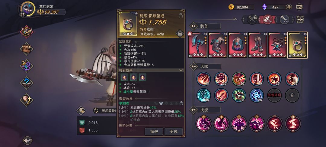 这里就靠图7中的项链了,装备到T4后,项链会有个“珍宝”类别,这个升阶满后所需套装-2,所以我的2先锋变成了4锋,其他套装也是以此类推(划重点:至少要装备2件套装,才能触发珍宝项链的效果)武器最好燎原,单体输出的神