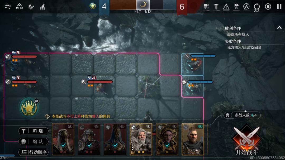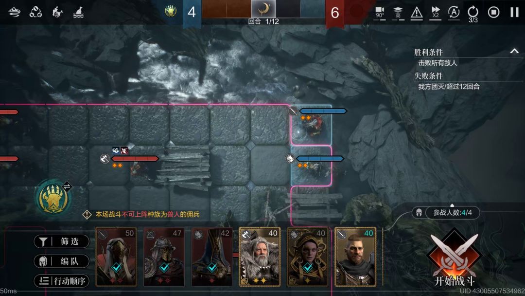 元帅速度堆到3000+即可,打法和统帅差不多,让元帅当T,夜莺在后排输出,逐个击破。工具人还是惩罚和鹰眼,记得吃火焰药水,免死的兽人会留1滴血,在回合开始时会直接被烧死。