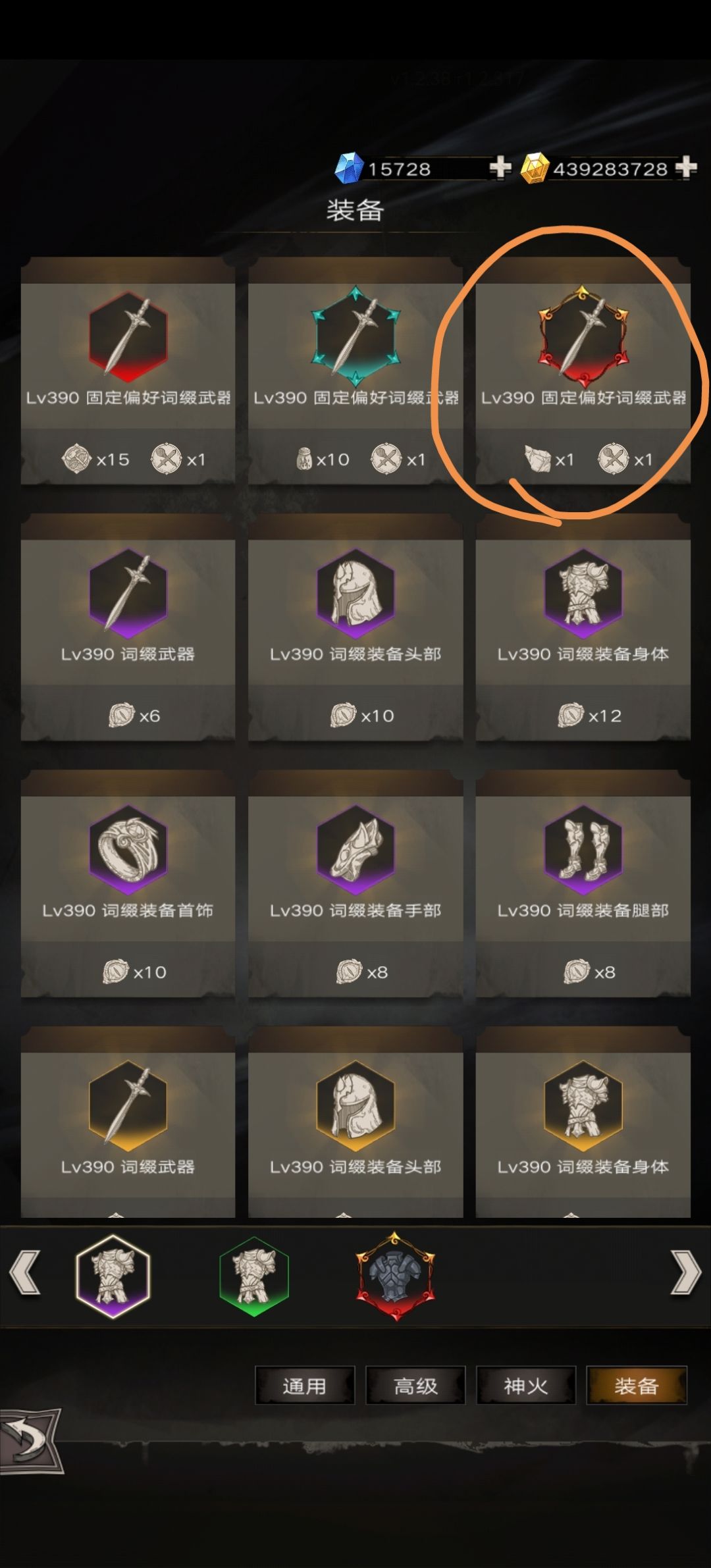 比如,我想玩巴哈(或雷矛无命血刃),先找一个秘纹的巴哈神器(其他兵装找威势),词条数量和种类都无所谓,当然上面还有我们想要的普攻、耐久、法伤、全伤还有绯红、巨灵、怜月特性就更好了!