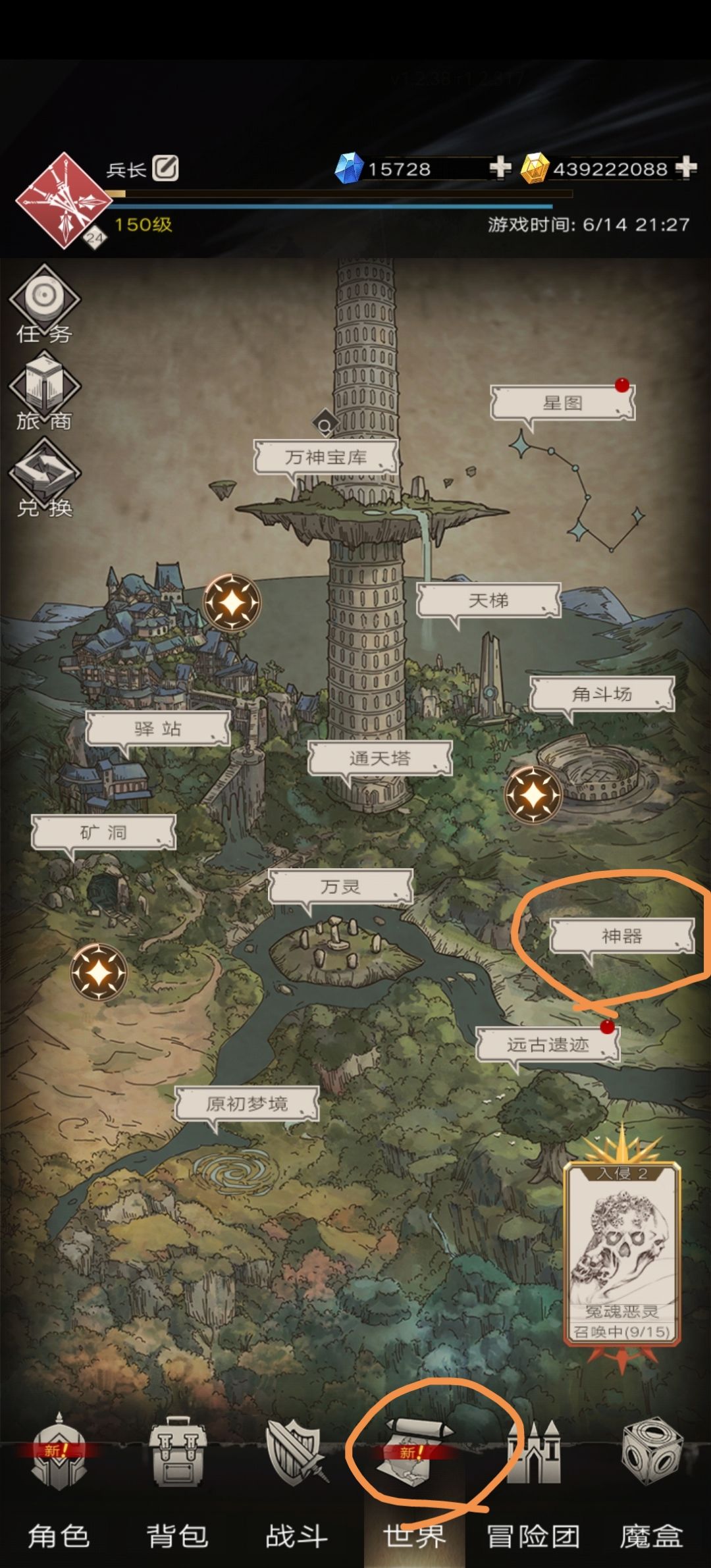 来源二是每天打三次星界入侵的小怪,每次给一个神器,每天最多拿3个,这种得到的神器词条数量也随机,但词条等级最高能到9;隔几天把入侵小怪打完可以打BOSS(BOSS等级会逐渐提升),打完可以得到1件神器,1级BOSS神器词条等级能到19,预计后面高等级BOSS给的神器词条等级更高!