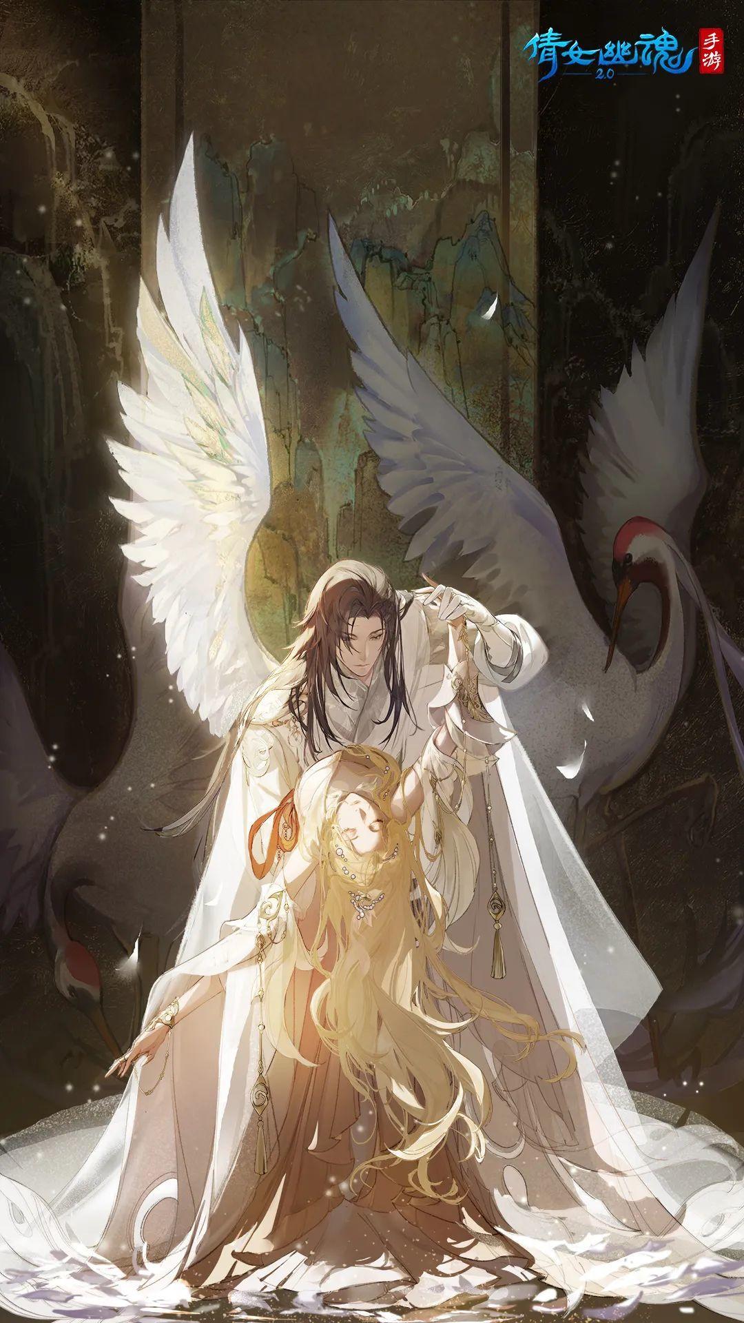 恋人相拥,神女闭目。仙鹤于身后振翅低首,不愿惊动这对有情之人。衣袂相交,却是情断之时。