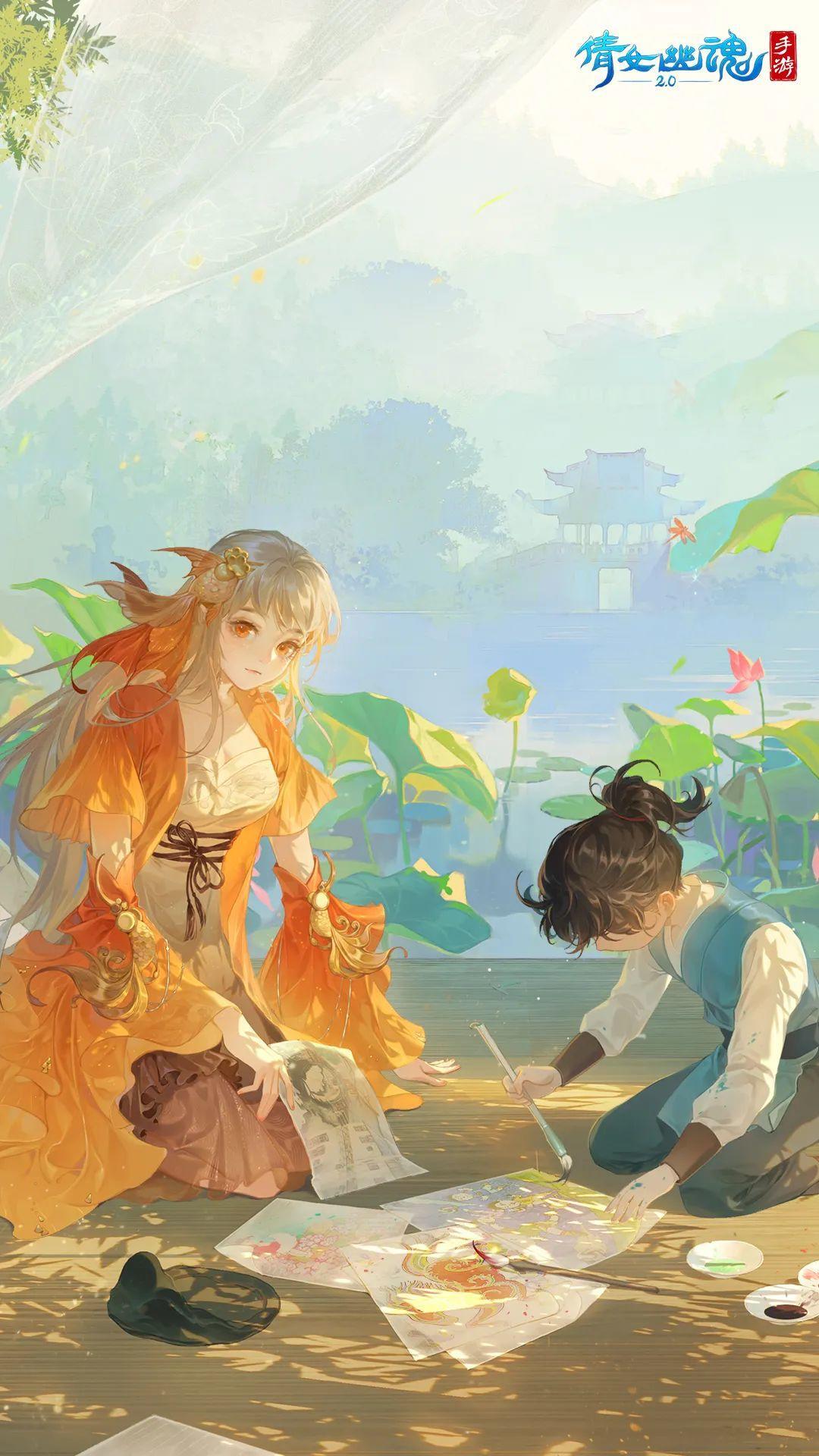 金鲤化形,游嬉湖岸。银纱飞舞,萤火作伴,两人相伴于夜色中,缱绻之意藏在他深沉的眼眸中。