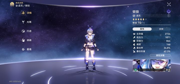 没办法,景元不能再拉攻击了(再拉稀释太厉害了,等罗刹出了我才能给他加个御空拐)银狼2命以下建议老老实实当辅助用,2命以上经济富余可以考虑抽个专武走输出(跑题了跑题了)