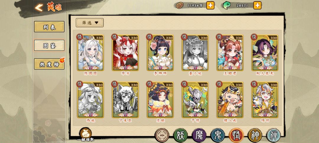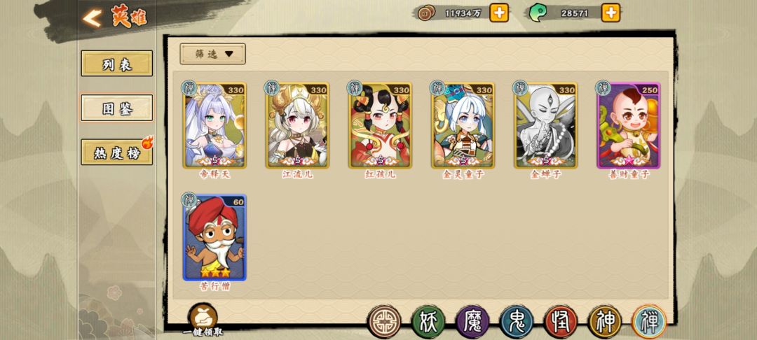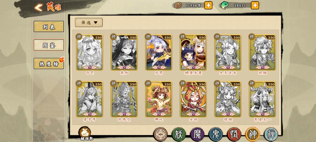 神系 t0.5句芒 (群里大佬都说改版后很厉害)t1后羿 羲和 祝融