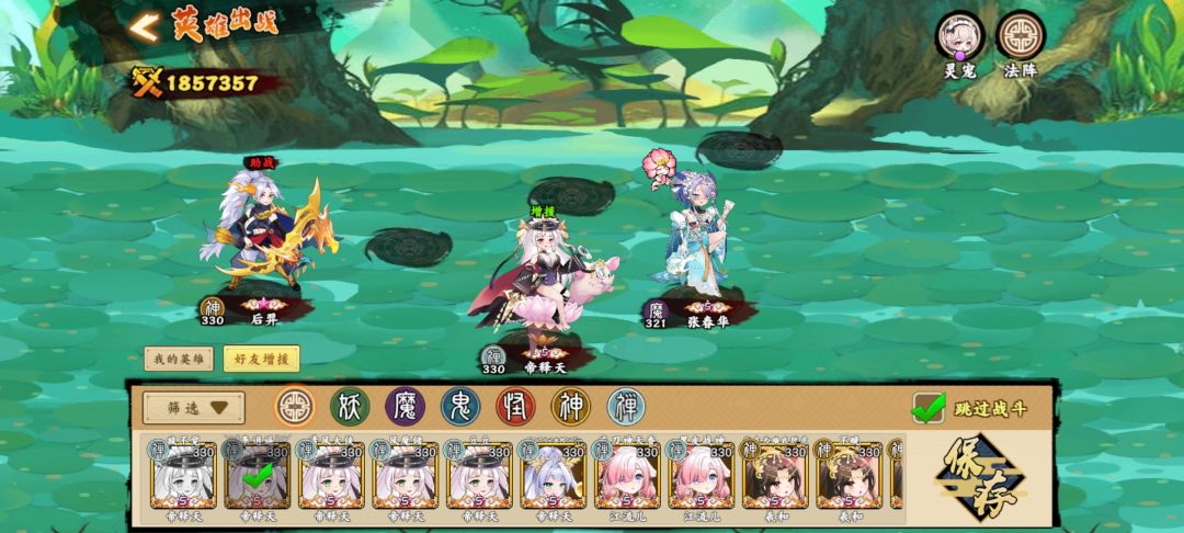 仙灵就拉红色的给输出的 等级越高越好 然后拉绿色的给辅助