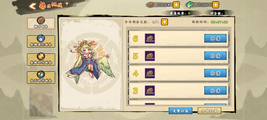 元气封印 打狗粮的好地方 每天可以扫荡5次 选自己最高的关卡扫荡