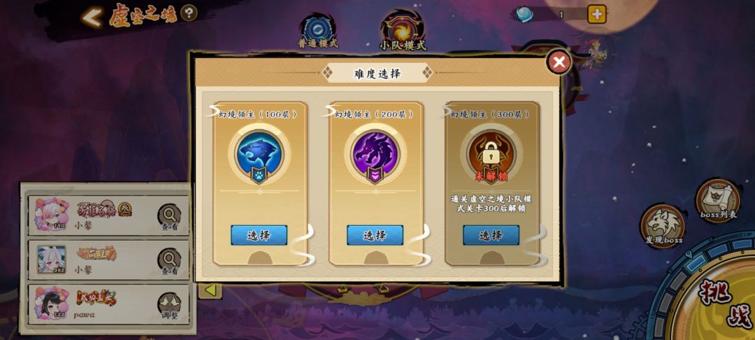 虚空 普通模式打完给进阶石 听大佬说后面进阶石会不够用 小队模式给英雄经验 小队模式有发现boss 每天可以打一次