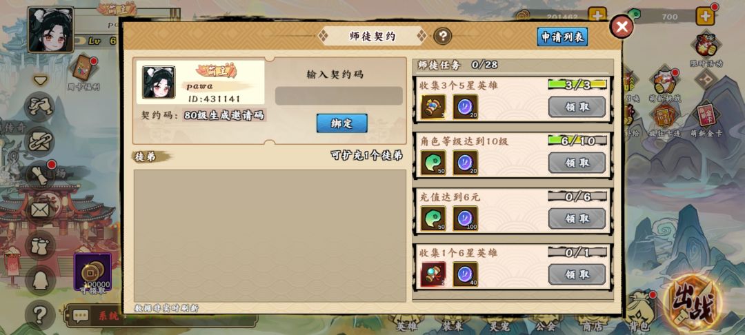 萌新可以去企鹅群里找人要个契约码 师徒任务里也是有黄券可以拿到 左下角企鹅可以加群 有什么问题这都可以问里面的大佬