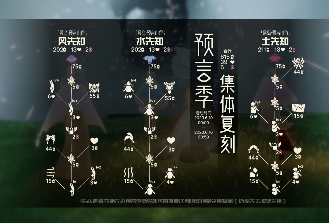 𝟮.除火先知外,预言季其余三位先祖以"集体复刻"的形式到访,将于6.16 23:59离开。
