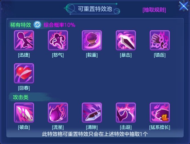 3)对应活动特效池中重置出稀有特效时会进入锁定状态,后续重置时不会重复出现该稀有特效(可手动重置锁定状态)