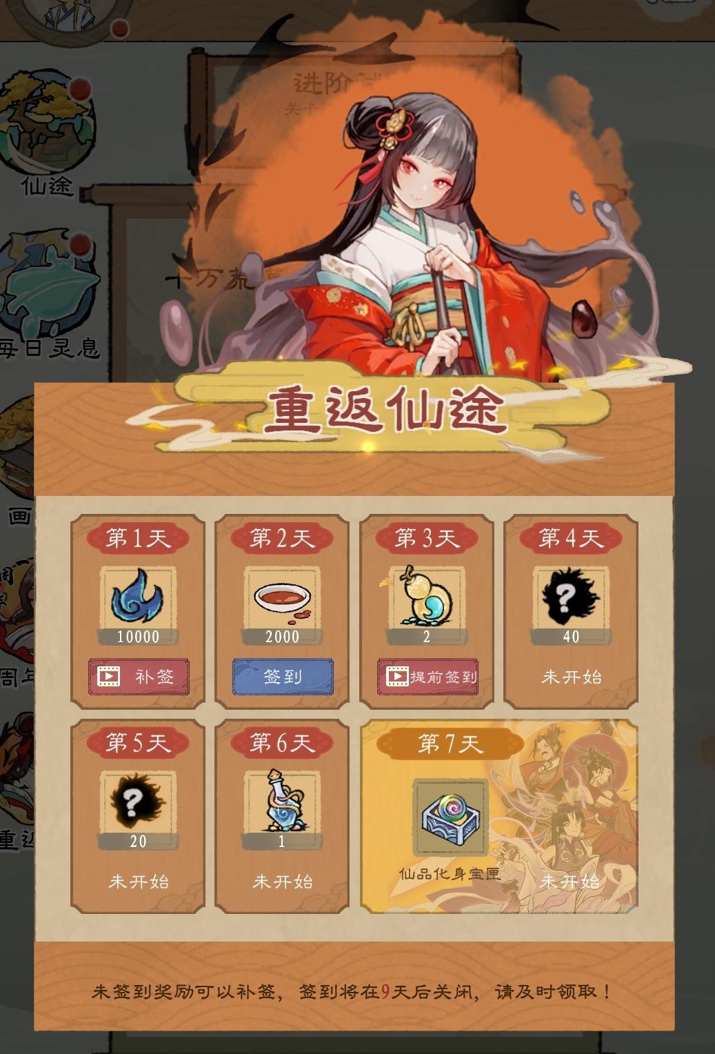 同时开启「重返仙途」回归限时签到活动,