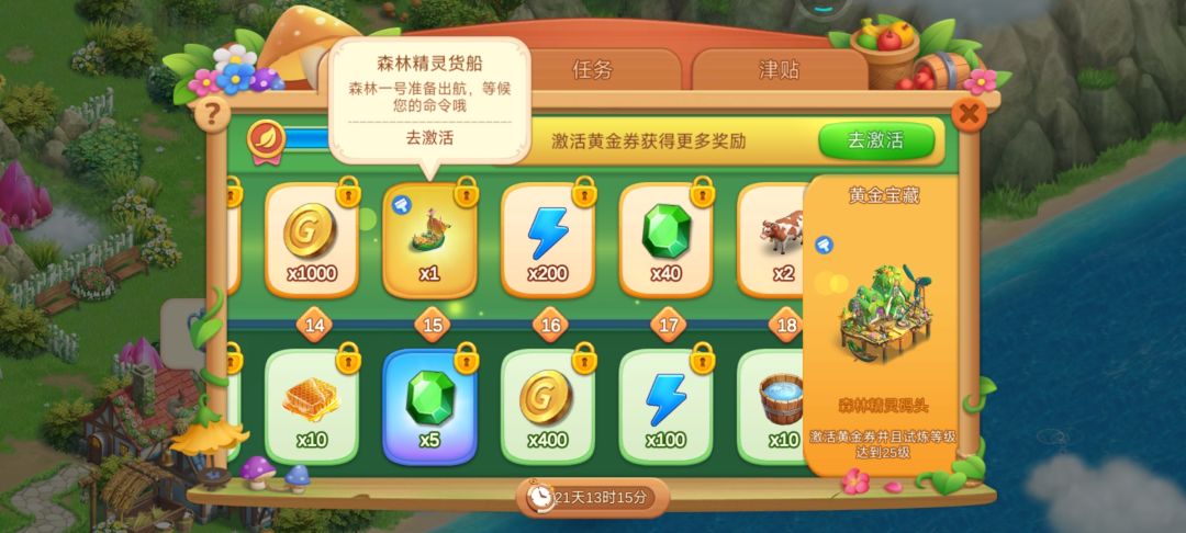 购买了黄金券战令的玩家,获得了“森林精灵货船”以及“森林精灵码头”的涂装后