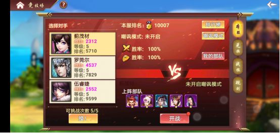 在竞技场中可以看到与自己排名相仿的敌人,挑战成功后,如果战胜排名靠前的玩家,则与该玩家互换位置,并且还有丰厚奖励。每天会有5次免费挑战次数。