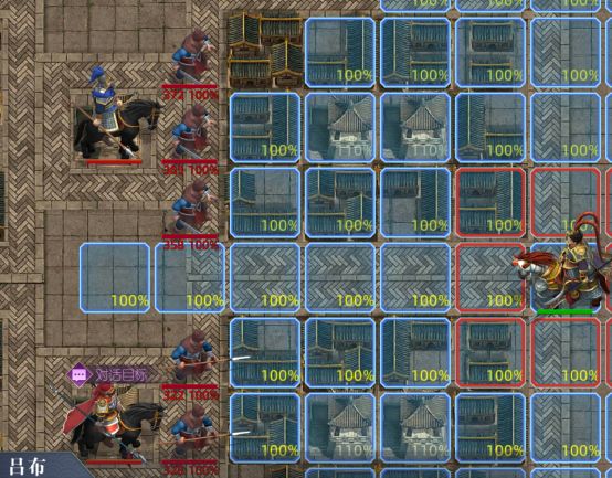 开局吕布走到最大位置,清2个杂兵。注意敌方回合,别让王方和李蒙被反击秒了,两人同时接近吕布,触发对话。