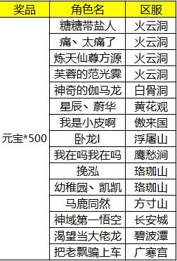 》》元宝奖励将在名单公示后的7个工作日内发放,若参与活动时提供的角色信息有误则视为放弃奖励。