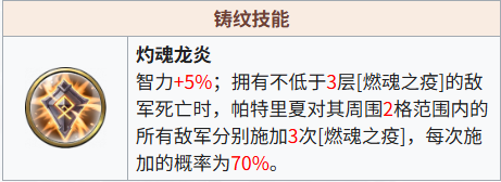 [被动]使用技能时,拥有不低于3层[燃魂之疫]的敌军及拥有[冕焰之护]的友军,其周围2格范围内均视为自身技能可达射程,且攻击时远程士兵会一同攻击。