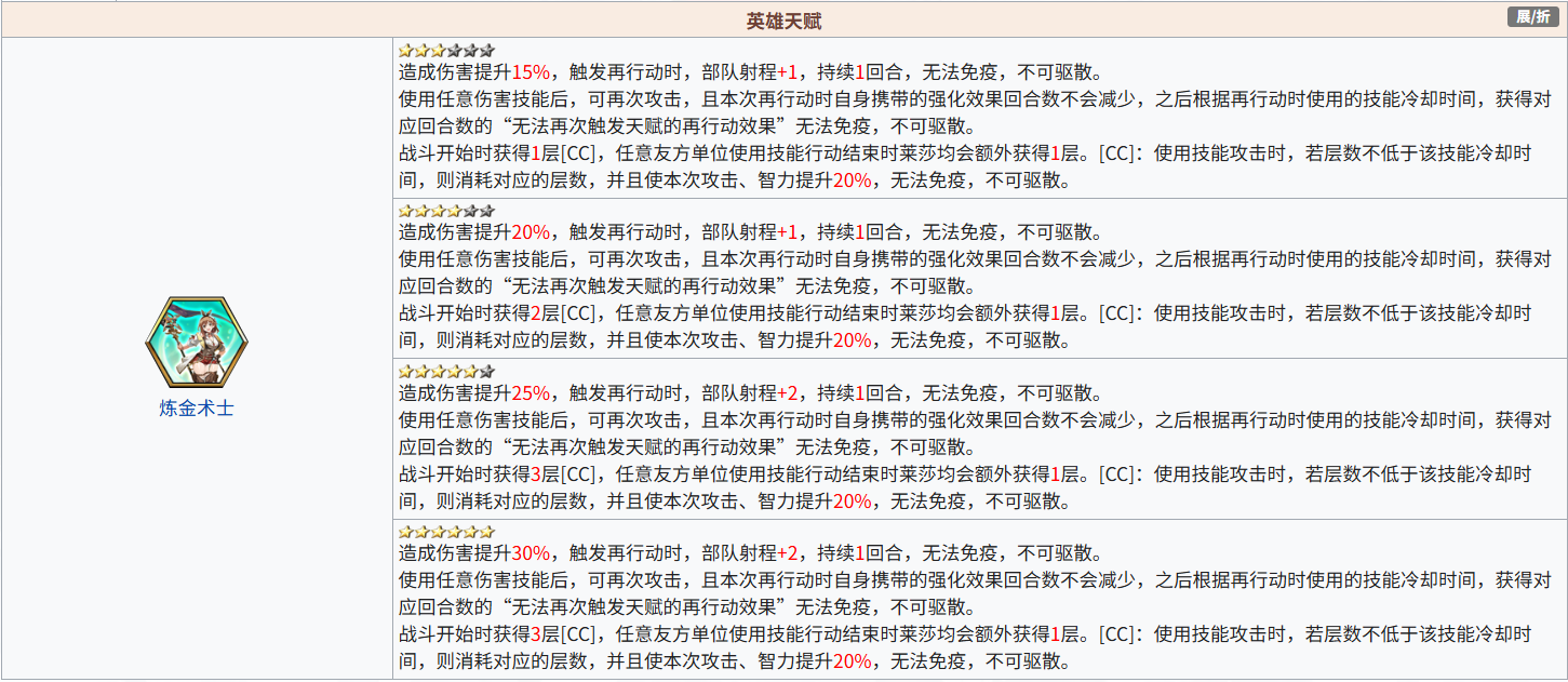 37.莱莎琳·斯托特[天赋加射程,3C技能被动加射程],触发再行动时,可3格,5星后,可4格;主动造成伤害后,获得持续1回合的“使用伤害类技能时部队射程+2”;若有充足数量的[CC],某些技能的射程+1。