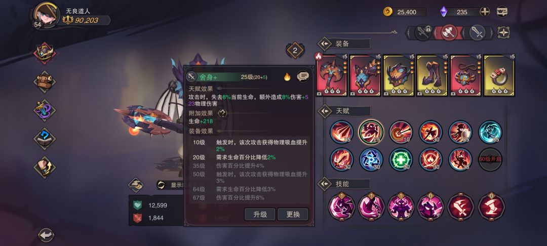 ps:舍身➕疯狂➕生命盾➕盾噬简直无敌,生命盾进场减40%当前血量和叠盾,触发疯狂和盾噬增伤,舍身继续压血量增伤,血量低于25%,触发疯狂吸血,一下回到一半以上,战斗结束,又触发生命盾,回复盾的一定比例血量,一般回到80%血量进入下一场战斗。