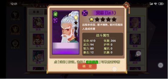 每个武将,刚获得时,都会携带一些基础信息,包括【阵营】、【职业】、【位置】、【资质】等。通过这些基础信息,我们可以一步一步对比分析这个武将是否可以代替队伍中的其他武将上阵,是否值得我们花费时间花精力去培养他。