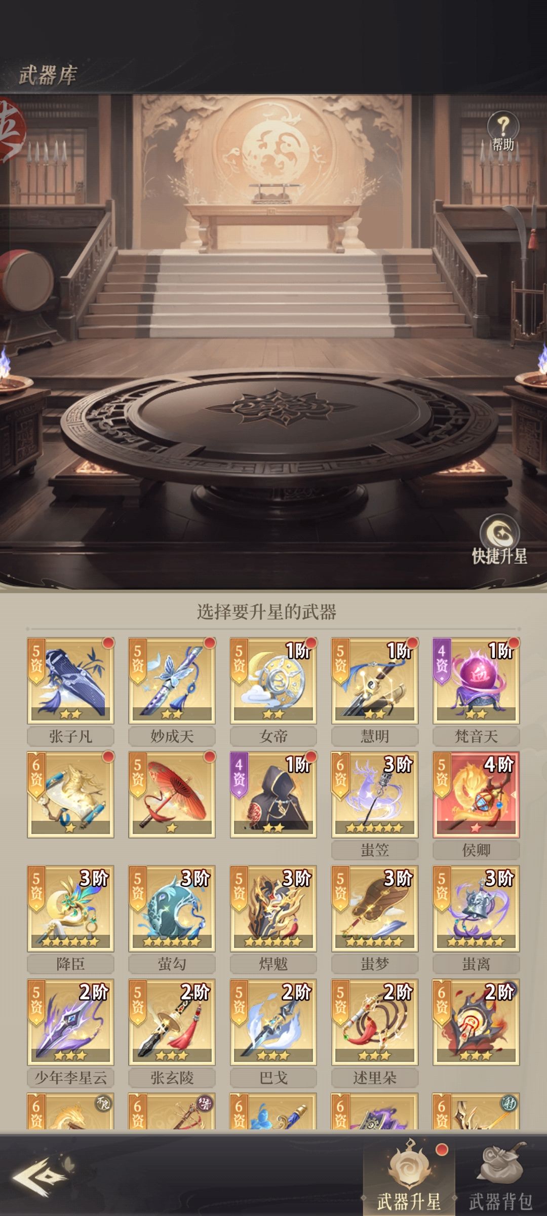 双卡过了也没再续了,准备跟之前养老的斗罗卡牌一样佛系(玩了一年2600多万战力好像)。主队限定蛊器每人一件,限定装备差一套加两个鞋件,天暗要是不增加时间我还真拿不到呢,今晚拍个石头应该稳稳的(主要头像框帅)。之前尸巫很弟弟,现在很多大佬都从纯气换双巫四巫了。将臣不愧一姐辅助,绝一高星真的很强,打架时候直接就能复活一个接近满血的前排尸祖,绝一四星就很好用。武器没买68加上前期不太会弄这个只能这么稀烂了。天山68最后买的,只能说万能碎片加战力蒸的很猛。