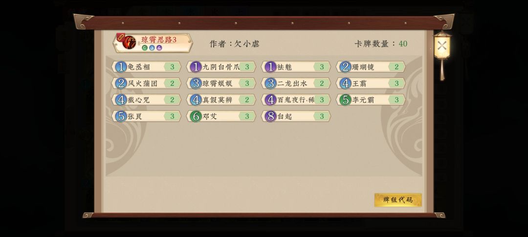 卡组一:利用琼霄和共工衍化对方生灵 白泽清场