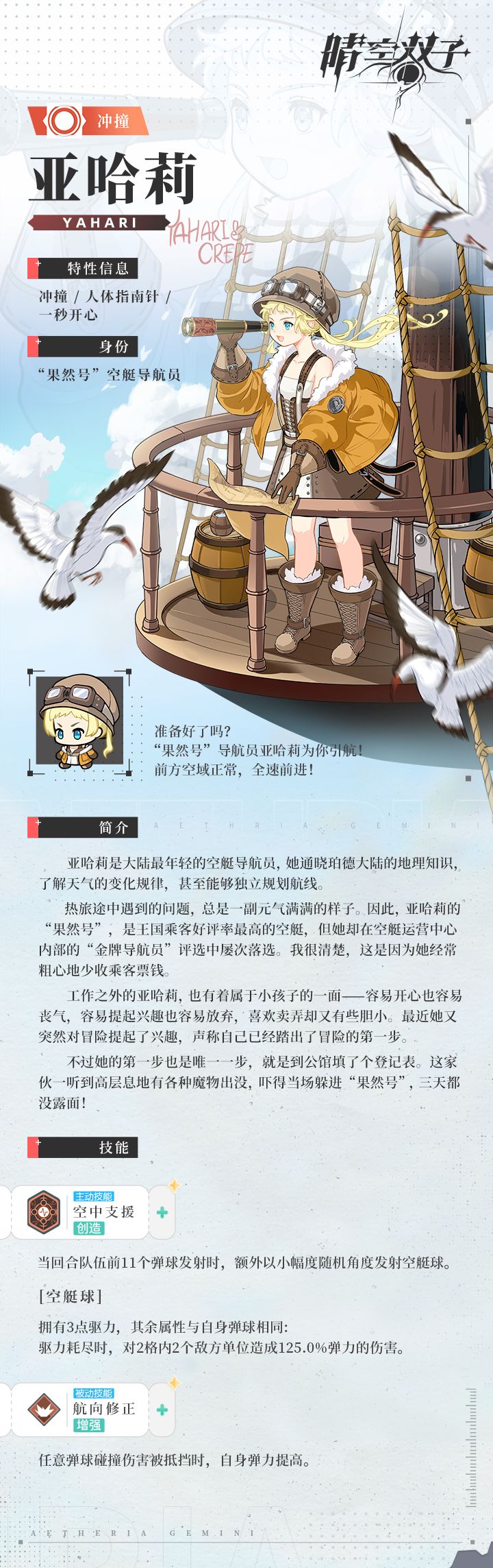 ✧角色档案✧准备好了吗?“果然号”导航员亚哈莉为你引航!前方空域正常,全速前进!