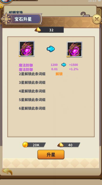 传说宝石依靠分解传说宝石的粉尘升星,词条随机