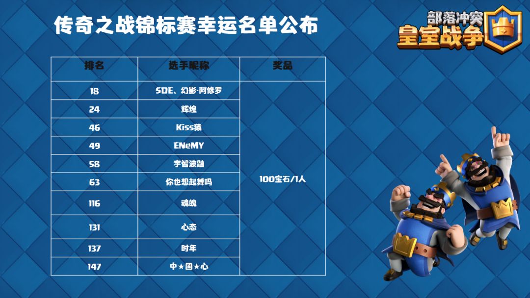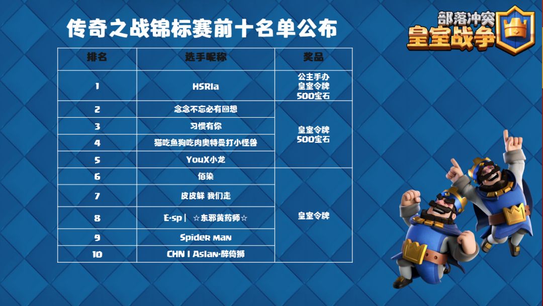 【获奖信息】传奇之战锦标赛活动获奖名单
