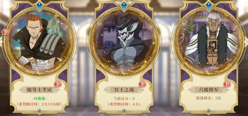 3、30-60级之间,将不断解锁挑战模式中的“魔导士考试”、“冥王之战”、“六魔