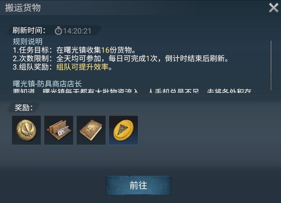 这不,曙光镇防具商店的店长就在找人帮他搬运货物。据说店长还准备了丰厚的奖励,让我们赶快行动起来吧!