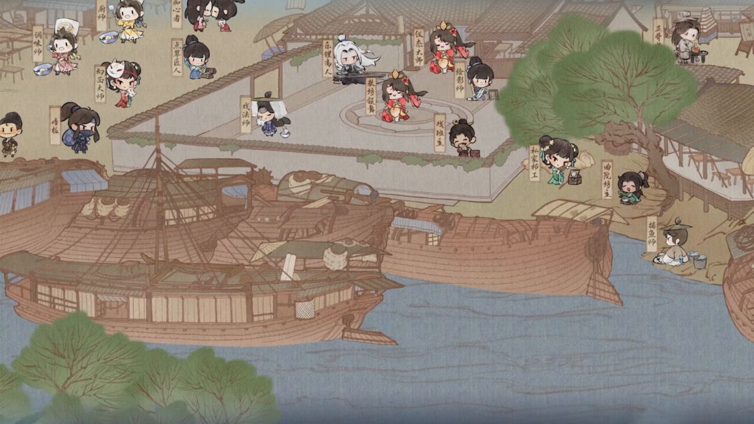 《清明上河图》上的主角正是形形色色的人。图上有奋力拉桅杆避免撞桥事故的船夫,有在虹桥旁摆摊的算卦师,有进京马行街城门旁忙着缴税的远行商人……据齐藤谦所撰《拙堂文话·卷八》统计,《清明上河图》中共有各色人物1659人,从事于各类行当——我们把绝大部分有趣的行当,都做成了玩家可以去从事的江湖身份。