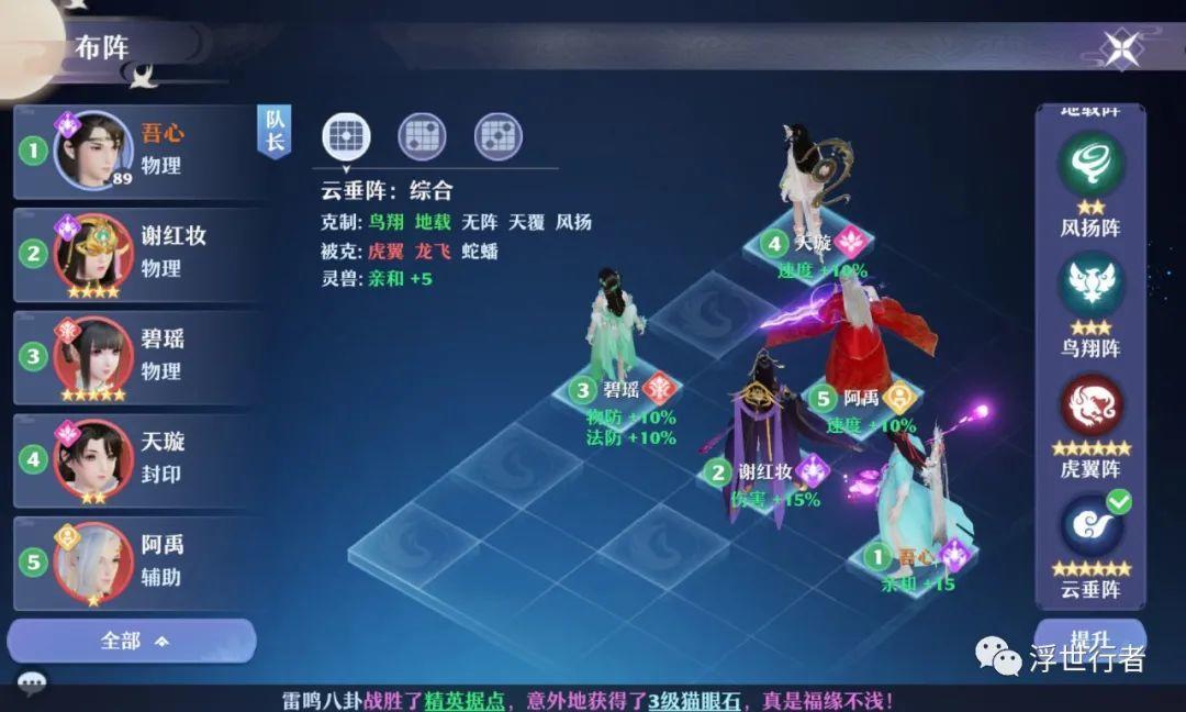 不同的阵法可以适用于不同的玩法或者队伍配置,但是有一种阵法却适用于大部分常规队伍配置,在PVP玩法中出场率很高,那就是云垂阵。