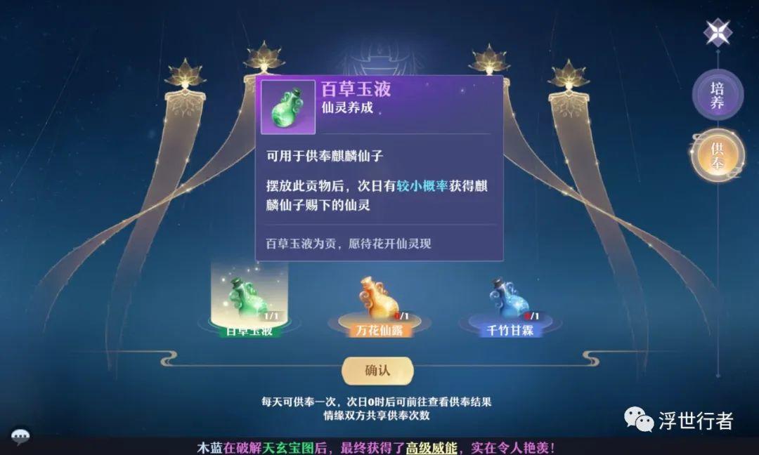元宝数量有限的小伙伴可以考虑全部使用玩乐,心情溢出的时候再勤修一次(每天的4次全部补充温饱),也就是每4次玩乐搭配1次勤修,总共20次勤修,79次玩乐将仙灵培养到仙元期。