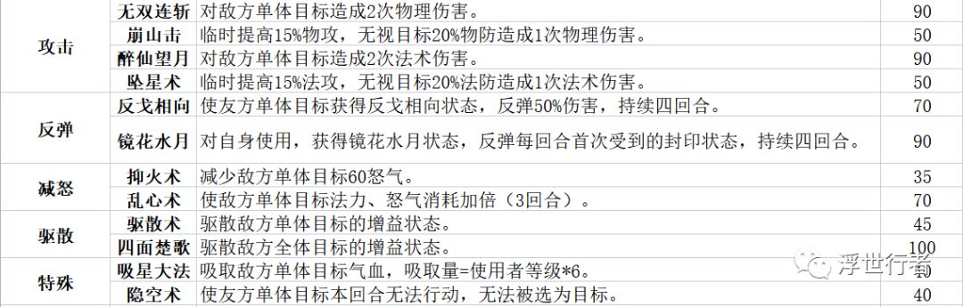 失魂落魄:70怒气,降低敌方全体单位5%法攻(持续10回合)。