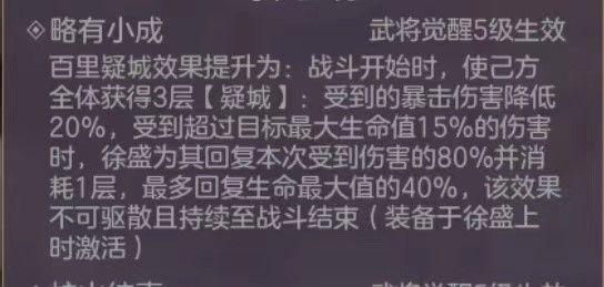 略有小成:强化三星技能,强化“疑城”BUFF效果,全面提升队伍坦度。