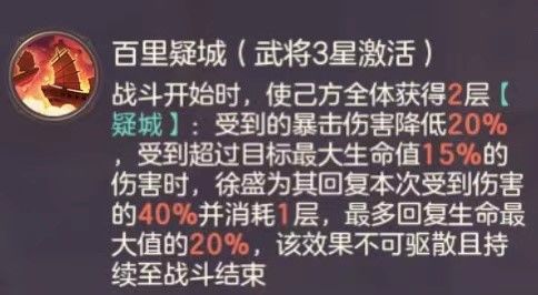 神乎其技:提高我方武将叠满“疑城”后造成的灼烧伤害。